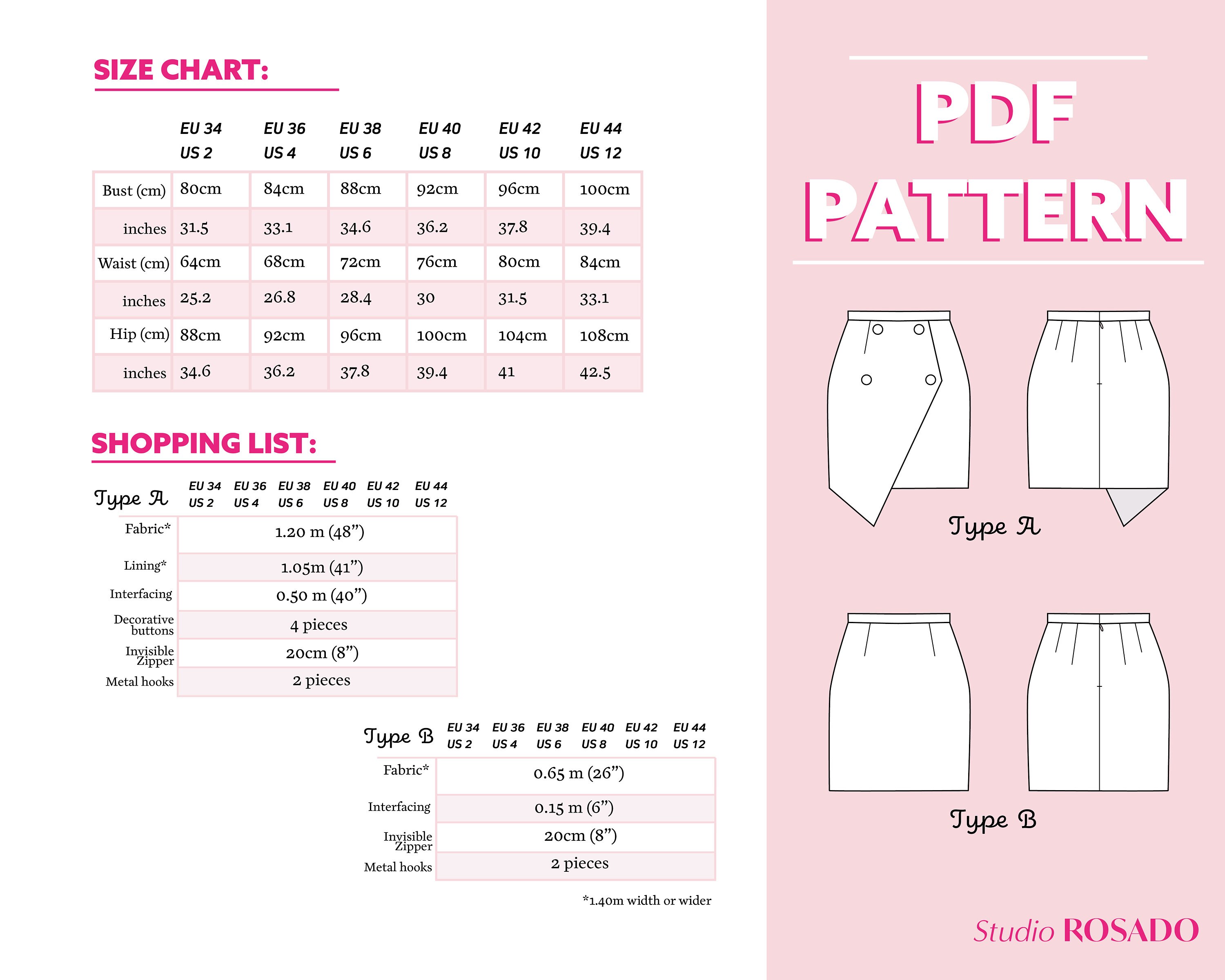 Wrap Skirt Pdf Sewing Pattern Sizes 4 16 Eu 34 46 Two Etsy